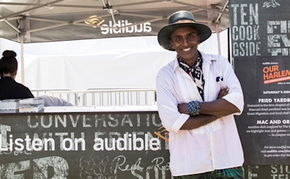 On the eve of the launch of Audible Original Our Harlem: Seven Days of Cooking, Music, and Soul at the Red Rooster, chef, restaurateur, author, and TV personality Marcus Samuelsson arrived at our Innovation Cathedral with an Audible “Our Harlem” food truck in tow.